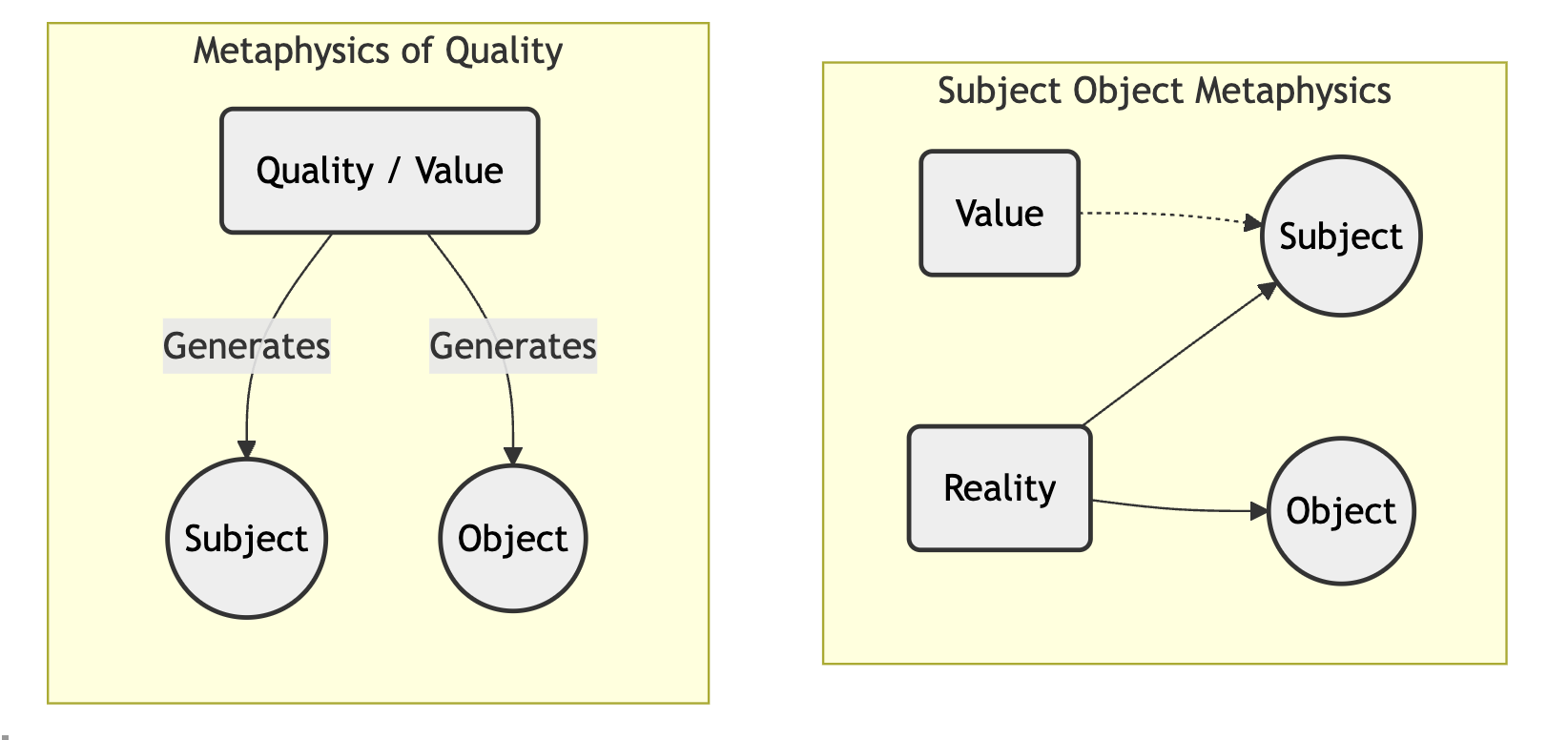 MoQ proposes: Quality, or Value, is primary. Value exists not as a subjective projection onto reality but as the fundamental condition from which subject-object understanding emerges. The perception of "betterness" precedes intellectual category construction of "self" and "other."